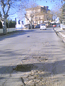 Nella delibera è scritto che le cause delle disastrose condizioni delle strade derivano da assestamenti del terreno dopo scavi per allacci alle reti delle infrastrutture o dall?intenso traffico dei veicoli. Uno studio statistico della ?B&B Insurance Broker srl? ha inviato al Comune i dati dei sinistri avvenuti sul territorio, dimostrando che alcune strade hanno una sinistrosità elevatissima, dovuta soprattutto al loro cattivo stato di manutenzione. La commissione prefettizia sta correndo ai ripari. Sarebbe ora, perché gli automobilisti non ne possono più.