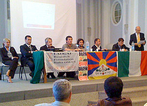 In molti, giovedì pomeriggio, sono accorsi al Paradiso sul Mare di Anzio, per partecipare al convegno sul Tibet organizzato dall?associazione Libertà e Azione. Presenti al tavolo dei conferenziati: il vicesindaco Ruggero Garzia, l?Assessore allo Sport ed al Turismo Umberto Succi, il consigliere comunale Sebastiano Attoni, il consigliere comunale di Latina Maurizio Scalia, Rodolfo Turano e Toni Brandi, dell?associazione Laogai Research Foundation Italia Onlus. A prendere per primo la parola è stato il giovane Simone Bosco, di Libertà e Azione che, dopo aver presentato le autorità presenti, ha passato il microfono a Ruggero Garzia. ?Vedere così tanti ragazzi riuniti per dibattere sulla situazione tibetana - ha detto il vicesindaco - è un simbolo della sensibilità e del forte attaccamento ai valori della vita umana che ci sono nella nostra società. Il solo star seduti qui, in questa sala, deve essere un monito per far capire che l?Italia è vicina al popolo del Tibet, che soffre in silenzio?. Acceso l?intervento di Toni Brandi che, grazie all?ausilio delle diapositive ha riassunto la situazione tibetana odierna: slide di giovani ai quali sono stati tolti gli organi o di civili uccisi senza motivo sono bastate per smuovere le coscienze. La Laogai Foundation prende il nome dalla parola Laogai, che designa i campi di concentramento in Cina, nei quali donne, uomini e bambini vengono sfruttati per oltre 18 ore di lavoro, con un guadagno minimo, a vantaggio di grandi multinazionale. Una tematica scottante che ha unito i presenti nella riflessione.