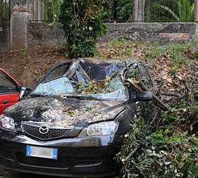 CROLLA UN ALBERO E DISTRUGGE UN'AUTO