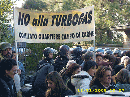 Stanotte, all?incirca alle 3,30 il presidio Turbogas è stato sgomberato. Gli agenti in tenuta anti sommossa si sono recati a Campo di Carne per porre fine all?occupazione che da alcuni anni avevano messo in atto per evitare la costruzione della centrale Turbogas. Stanotte tre degli occupanti, che non hanno opposto alcuna resistenza, sono stati portati in questura a Latina, dove sono stati accusati di occupazione abusiva. Sono stati rilasciati solo questa mattina. Al presidio, intanto, si era già radunata la folla per impedire l'ingresso dei camion. Le forze dell'ordine, per lasciare libero l'ingresso agli automezzi, hanno bloccato la folla. ?Una vera e propria prova di forza contro la volontà espressa dall?interà città di Aprilia e contro quella dei comuni limitrofi che si sono sempre espressi contro la realizzazione della centrale turbogas di Aprilia - è quanto dichiara in una nota Claudio Pelagallo vicepresidente dei Verdi del Lazio - a seguito dello sgombero avvenuto questa notte del presidio no turbogas da parte delle forze dell?ordine. Ai tre giovani occupanti Filippo, Marica e Marco fermati e portati in questura e denunciati va tutta la solidarietà e vicinanza dei Verdi, il loro comportamento esemplare e non violento è quello di una intera comunità, migliaia di cittadini che da anni con metodi pacifici portano avanti una battaglia di civiltà a difesa della salute e del futuro del territorio contro poteri forti ed istituzioni compiacenti. Davanti all?arroganza dimostrata, la mobilitazione dei cittadini non può fermarsi, rilanciando da subito la proposta di abbandonare il progetto turbogas a favore di un impianto ad energie pulite e rinnovabili?. I tre ragazzi, rientrati nella mattinata stremati dalla notatta trascorsa in questura, hanno deciso di riposarsi un pò prima di tornare alla battaglia contro la Turbogas. Intanto è già stata convocata un?assemblea cittadina nella sede comunale di Aprilia, nella quale discutere i prossimi passi da seguire per evitare la costruzione della centrale, mentre nel primo pomeriggio si terrà un incontro del tutto spontaneo presso il presidio, che ha visto partecipare tutti coloro che fin dal primo mattino si erano radunati per impedire che il presidio fosse sgomberato.