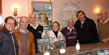 Donato a Francesco e Ilaria Volpi dell?omonimo caffè, il calendario resterà esposto all?interno del bar tutto l?anno. Alla presentazione del calendario sono intervenuti il presidente del consiglio comunale di Nettuno Nicola Burrini, il direttore generale del Nettuno Baseball Giorgio De Carolis, l?ex manager Ruggero Bagialemani, il direttore del settimanale ?Il Granchio? Ivo Iannozzi e tanti amici. Nei prossimi giorni sarà possibile apprezzare altre belle foto scattate da Gigi Avvisati nel calendario 2009 edito dalla Banca di Credito Cooperativo di Nettuno. (Foto: Eduardo Manna)