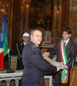 Al termine della cerimonia, l'assessore ai Servizi Sociali, responsabile del corpo di Polizia Locale, Domenico Cianfriglia ha ringraziato il comandante Giorgio Tomassetti e gli agenti a suo seguito per il lavoro svolto nella città, in particolare, sono stati consegnati due riconoscimenti a Franco Paolini (foto) e Alessandro Garofolo, per la pericolosa azione svolta nel mese di agosto, durante la quale sono riusciti ad arrestare un malvivente che si era reso responsabile del furto di un'autovettura.
