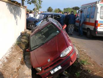 Ennesimo incidente in Via dei Frati a Nettuno. L?ultimo è accaduto sabato pomeriggio, verso le 17,30. Un forte boato ha spaventato tutti i residenti della zona che sono immediatamente scesi in strada a soccorrere i malcapitati. Purtroppo nulla di nuovo per questo tratto di strada, precisamente all?altezza dell?incrocio con Via Orte. Proprio da questa via proveniva una Fiat Palio che non ha potuto evitare il forte impatto con la Renault Scenic che arrivava da Via dei Frati. Uno scontro violento quello che ha coinvolto le due vetture: una carambola che ha scaraventato la Fiat direttamente nella banchina opposta, mentre la Renault ha finito il suo viaggio schiantandosi nel muro di cinta di un?abitazione. Proprio qui il proprietario della villetta aveva trascorso il pomeriggio, intento a lavoretti di manutenzione, e solo per un caso fortuito non si è trovato lì al momento dell?incidente. Alla guida della Fiat un uomo di mezza età, in abiti da lavoro, che dal lato conducente è finito al lato viaggiatore, privo di sensi. A bordo dell?altra auto, invece, una famiglia di quattro persone, con due bimbi piccoli. Tutti hanno riportato escoriazioni, contusioni, ferite ed un forte shock. Sul posto sono accorsi contemporaneamente l?ambulanza ed una volante dei Carabinieri, mentre i feriti sono stati trasportati all?ospedale "Riuniti".
