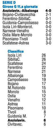 CALCIO. L?Anziolavinio ritrova il sorriso. I biancoazzurri di mister Mauro Pernarella annientano l?Albalonga 4-0 grazie alle doppiette di Fioravanti e Antonelli e finalmente ?respirano? in fondo alla classifica (serie D, girone G).