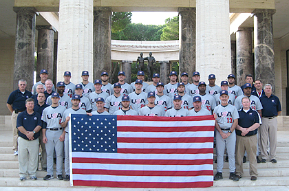Un ringraziamento - conclude il sindaco - va anche alle federazioni italiana e mondiale di baseball che hanno scelto Nettuno per ospitare dei mondiali". Nella foto la nazionale americana in visita al cimitero americano di Nettuno. (Foto Avvisati)