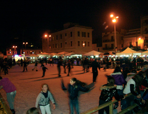 15 metri di piasta ghiacciata che a poco a poco sta per essere smontata con la delusione di tanti bambini e ragazzi che hanno affollato il freddo manto sfrecciando sui pattini. Per loro il divertimento su pista é rimandato per il prossimo anno.