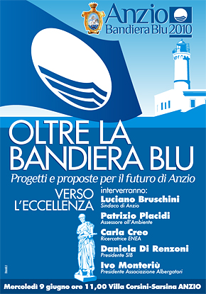 E' prevista per mercoledì 9 giugno alle ore 11, all'interno del Salone delle Feste di Villa Corsini Sarsina ad Anzio, l'incontro "Oltre la Bandiera Blu - verso l?eccellenza? a cui parteciperanno amministratori comunali, operatori balneari, albergatori e operatori turistici. I presenti si confronteranno rispetto ai progetti ed alle proposte per il futuro della città di Anzio che il mese scorso, ha conquistato la Bandiera Blu, l'unica città della Provincia di Roma.