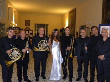 (in foto Barbara Chiappini e i Fiati Ensemble nel retro del Santuario di Santa Maria Goretti in occasione della serata di gala del premio Poseidon)