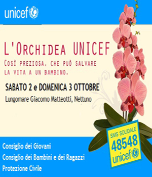 Sta per sbocciare "L'Orchidea dell'Unicef per i bambini". Appuntamento in tutte le piazze italiane, sabato 2 e domenica 3 ottobre, in concomitanza con la "Festa dei Nonni", con la raccolta fondi promossa dal Fondo delle Nazioni Unite per l'infanzia. L'obiettivo è salvare la vita a migliaia di bambini attraverso la distribuzione integrata di zanzariere, vaccini, alimenti terapeutici, vitamine e sali reidradanti. Quest'anno si intende raggiungere 230.000 bambini.