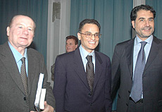 La Sala degli Specchi del Paradiso sul Mare colma di spettatori in occasione del convegno ?Dallo Sbarco di Anzio all?Italia multietnica?. Ospiti attesi il Vicedirettore del Corriere della Sera, Magdi Allàm (foto con Bisiach e De Angelis) e dello Storico, Gianni Bisiach. ?Ad Anzio - ha detto il Sindaco Candido De Angelis nel suo intervento - convivono 104 diverse nazionalità, pari al 10% di cittadini extracomunitari che, nella maggior parte dei casi, sono perfettamente integrati con il resto della cittadinanza. Siamo una città aperta a tutti coloro che vengono per lavorare e per migliorare la propria condizione. Forse, non è utopistico pensare, che dalle nuove generazioni parte la sfida per costruire una perfetta integrazione?.