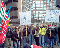 Lo sciopero è andato avanti tutta la mattina, alcuni manifestanti sono rimasti davanti allo stabilimento di Padiglione, mentre gli altri sono andati in Regione, con cori e striscioni. ?22 gennaio 1944: sbarcano gli americani. 22 gennaio 2007, si reimbarcano?, oppure ?Anzio U.S.A. e getta? erano solo alcuni degli slogan di protesta contro una decisione che porterà al licenziamento di 80 persone nei prossimi mesi.