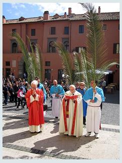 A celebrare una delle messe più affollate di questa mattina a Nettuno, Don Francesco Angelucci, parroco della chiesa dei S.S. Giovanni Battista ed Evangelista. L'ingresso nella chiesa con le palme benedette ed il corteo di fedeli e delle confraternite hanno anticipato la santa messa. La liturgia della Domenica delle Palme, infatti, si svolge iniziando da un luogo al di fuori della chiesa dove si radunano i fedeli ed il sacerdote che benedice i rami di ulivo o di palma; da qui poi l'inizio alla processione fin dentro la chiesa dove continua la celebrazione della messa con la lettura della Passione di Gesù.