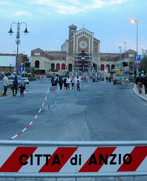 Insomma, cercasi disperatamente transenne comunali che a quanto pare almeno ieri scarseggiavano per chiudere la zona al traffico per l'evento. E Nettuno in mancanza di transenne se le è fatte "prestare" dalla cugina Anzio. Un simpatico "gemellaggio": le transenne di Anzio con lo sfondo del Santuario di Nostra Signora delle Grazie.