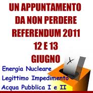 Si avvicina il tempo del voto. Presto alle urne, i prossimi 12 e 13 giugno, con i referendum abrogativi che riguarderanno i quattro quesiti referendari riguardanti il legittimo impedimento, il decreto Ronchi sulla privatizzazione dell'acqua ed il ritorno all'energia nucleare.