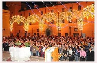 Tutti si riusniscono come ogni anno in Piazza San Giovanni, pronti a munirsi di fiaccola per cominciare a camminare verso le 20,30 nella piccola processione che si snoda tra le vie del borgo medioevale. Nel corso della fiaccolata si recita il rosario, poi i canti e le preghiere fino a che i fedeli, composti, si riuniscono ancora di fronte alla chiesa di San Giovanni. Qui ancora preghiere, suppliche e canti, tutti partecipati con passione. Emozionante il gesto di alzare le fiaccole al cielo al momento del canto, ogni anno una tradizione che si ritrova ferma, con la stessa passione.