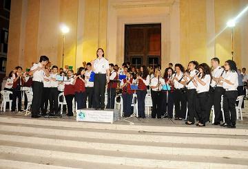 Alle 21.30 il via al concerto delle due bande alla presenza del sindaco Alessio Chiavetta. Grande la partecipazione all'evento durante il quale le due bande hanno suonato alternativamente ed insieme; tutt'attorno le vie imbandierate con i palloncini tricolori ed un'accoglienza tutta da ricordare.