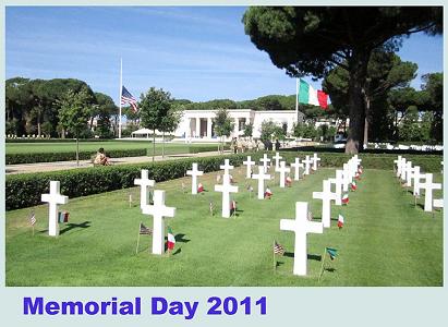 Italia e Stati Uniti d'America oggi unite nel ricordo in occasione del Memorial Day, la giornata isituita per non dimenticare i caduti di tutte le guerre. Contro la violenza e per difendere la libertà ogni anno, l'ultimo lunedì del mese di maggio, questa giornata è un'occasione per ricordare l'importanza dell'indipendenza, del coraggio, della patria. Stamattina, sotto un caldo sole, autorità civili e militari italiani e statunitensi si sono radunati per commemorare i defunti presso il Cimitero Americano di Nettuno. Tra il pubblico i veterani di guerra italiani e americani, rappresentanti delle comunità americane e nettunesi, i sindaci di Anzio e Nettuno Luciano Bruschini e Alessio Chiavetta, la presidente della regione Lazio Renata Polverini e l'onorevole Giuseppe Cossiga. Ad aprire e chiudere la cerimonia gli intensi inni delle due nazioni mentre il cimitero era sovrastato da due grandi bandiere, dell'Italia e dell'America.