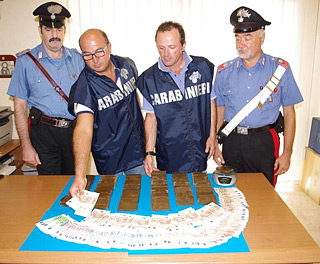 Ennesima operazione antidroga dei Carabinieri del Nucleo Operativo della Compagnia di Anzio che hanno arrestato un 63enne per detenzione ai fini di spaccio di un ingente quantitativo di HASHISH. L?uomo, con precedenti penali alle spalle, è stato bloccato all?interno del proprio appartamento, in località Falasche di Anzio. All?atto dell?irruzione l?uomo ha cercato di disfarsi dello stupefacente dal balcone ma l?intervento tempestivo dei militari, che avevano preventivamente cinturato l?abitazione, ha evitato che ciò avvenisse ed ha consentito di recuperare tutto il materiale. Complessivamente i Carabinieri hanno rinvenuto ben 6 Kg. di HASHISH, già suddivisi in panetti da 100 gr, nonché la somma contante di circa 10.000,00 euro, ritenuta provento dell?attività illecita. Una volta bloccato l?anziano è stato condotto presso la sede della Compagnia Carabinieri di Anzio per le formalità di rito per essere poi tradotto presso la Casa Circondariale di Velletri a disposizione dell?Autorità Giudiziaria dell?omonimo Tribunale. L?operazione, che non è la prima dell?inizio dell?anno di questa entità, rappresenta un risultato operativo di notevole rilievo anche dal punto di vista economico se si considera che solo il quantitativo oggetto di questo sequestrato immesso sul mercato avrebbe avuto un elevato ritorno economico. Le indagini non sono comunque concluse e continuano serrate sia per risalire ai canali di approvvigionamento dello stupefacente e soprattutto per accertare la posizione dell?uomo e capire se è inserito a pieno titolo nell?attività di spaccio o se si limitava a mantenere la sostanza per conto di altri.