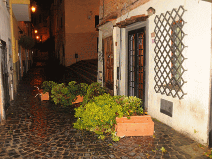 Intorno alle 20,30 di ieri sera, a causa di "Cleopatra" la perturbazione che ha sconvolto il litorale, cinque grossi vasi sono caduti da un balcone al terzo piano di un appartamento in via Sacchi nel Borgo Medioevale di Nettuno. Fortunatamente nessun passante è stato coinvolto nell'incidente, e ancora più fortunatamente i locali di quella zona il lunedì sono chiusi. Tragedia sfiorata. Si registrano numerosi alberi caduti lungo Via Scipione Borghese e Via Acciarella. Il ciclone mediterraneo "Cleopatra" ha causato precipitazioni molto intense, associate a raffiche vento forte e scariche elettriche. Anzio e Nettuno sono state tra le zone più colpite. (Foto Avvisati)