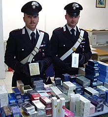 Dopo un controllo di routine, i militari hanno richiesto al conducente di aprire il portabagagli e qui hanno avuto la conferma ai loro sospetti, con circa 270 profumi delle migliori marche, tutti perfettamente sigillati e pronti per essere rivenduti sul mercato nero o esportati all?estero. Una volta accompagnati i tre in caserma sono bastate alcune telefonate per avere la conferma che tutta la merce era rubata, ed in parte era riconducibile al furto avvenuto alcuni giorni prima a Genzano presso una profumeria dell?azienda ?Limoni?, che in pochi giorni aveva subito, molti furti soprattutto ad Ostia, Acilia, Roma San Paolo.