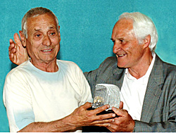 Tra i partecipanti anche Adelmo Eufemi , (a destra nella foto premia Sergio Paccariè) il campione che giocò nella Lazio negli anni Cinquanta e Sessanta, che ha fatto rivivere gli emozionanti momenti dei derby tra Anzio e Nettuno, prima del suo trasferimento alla squadra capitolina. A Dino Clauiano, capitano e allenatore del Nettuno dal 1958 al 1963, è stata consegnata una maglia ricordo del Nettuno, ma sono tanti gli ex giocatori premiati: Amantini, Binaglia, Bongarzoni, Del Gatto, Gastaldi, Decini, Nardini, Pierini, Mantovani, Puccillo, Giuseppe e Mario Pellegrini, Pambianco, i fratelli Marini, Leggi, Rotelli, Noro, Pisutu, Paccariè, Guazzaloca e Sanges. Sono intervenuti anche Alfredo Mercuri, presidente della Pro Loco di Nettuno, nonché ex calciatore del Nettuno, e Paolo Pietrangeli, direttore generale dell?attuale squadra partecipante al campionato di Eccellenza, augurandosi per il prossimo anno un allargamento del Comitato organizzatore. A tal proposito si è detto disponibile anche Patrizio Colantuono, presidente della Pro Loco Porto d?Anzio, magari per un coinvolgimento dei giocatori dell?Anzio Calcio (molti dei quali hanno giocato anche con il Nettuno).