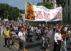?A questa giornata hanno preso parte tantissime persone in festa e serene che non vogliono essere in contrapposizione con nessuno, ma che testimoniano che la famiglia naturale è composta da un Padre una Madre e dei figli, spesso dimenticati dalle istituzioni e penalizzati fiscalmente?. Così ha spiegato il delegato di zona Roberto Loria, dell'Associazione Nazionale Famiglie Numerose, intervistato anche dal Tg1: ?Assistiamo ad una totale mancanza di considerazione per le famiglie numerose, che invece di essere facilitate ed agevolate vengono sommerse da inique tariffe delle utenze domestiche, che considerano gli alti consumi, necessaria esigenza di un nucleo familiare numeroso, uno spreco, elevando i costi di acqua , luce, gase ecc. fino a 6-7 volte. Questo va contro la nostra costituzione, che all'articolo 3 ricorda che tutti i cittadini hanno pari dignità sociale e sono uguali davanti alla legge, senza distinzioni?. Presto l?associazione farà una richiesta alla società Acqualatina per riconsiderare le quantità di acqua da distribuire, tenendo conto della consistenza del nucleo familiare.