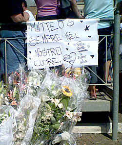 Oltre duemila persone hanno voluto dare il loro ultimo saluto a Matteo Serangeli, il sedicenne morto in un incidente sabato notte su viale Mencacci ad Anzio. I funerali si sono tenuti oggi pomeriggio alle 15,30 presso la basilica di Nostra Signora delle Grazie a Nettuno. A salutare per l?ultima volta Matteo c?erano amici, parenti, compagni di scuola, di calcio, anche tante persone che non conoscevano il giovane che ha dovuto dire addio alla vita troppo presto, per uno scherzo del destino. ?E? impossibile trovare una spiegazione ad eventi del genere - ha detto Don Massimo durante l?omelia - La fede in certi casi non può fornire delle risposte, ma può servire solo da supporto al dolore immenso dei familiari e di tutti quelli che hanno conosciuto Matteo, gli hanno voluto bene e gliene vorranno per sempre?. La bara bianca con il corpo del piccolo Matteo ha sfilato all?uscita dalla chiesa tra due grandi ali di folla. Tanta ed indescrivibile la commozione di chi ha dovuto salutare un giovane di appena 16 anni. ?Grazie Matteo per tutto quello che ci hai dato" - ha concluso Don Massimo. E un applauso lunghissimo ha accompagnato Matteo e lo ricorderà per sempre.