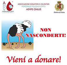 dall?Associazione Donatori e Volontari Personale Polizia di Stato. Risultati gratificanti per l?iniziativa ?Non nasconderti vieni a donare?, che si è conclusa la settimana scorsa e rappresenta ormai un appuntamento costante della stagione estiva.