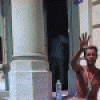 Saltano da un mezzo da guerra anfibio sulla spiaggia, non indossano divise militari ma una...