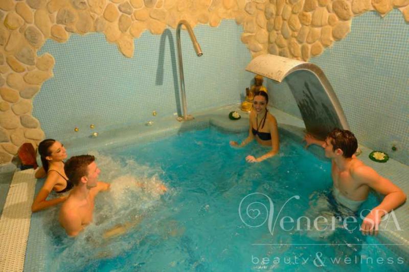 Idromassaggio (Il piacere di essere immersi in una vera vasca Idromassaggio con acqua a 31° dove sei diverse postazioni sono state concepite per praticare i piu' svariati massaggi).